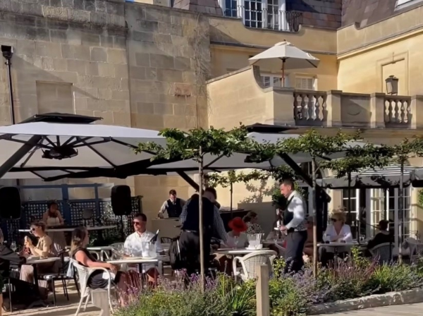 Our heated parasols are on standby if the evening warmth needs a little helping hand, or we'll move indoors if rain stops play.